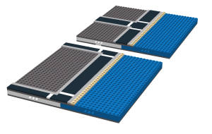 The Edge module is the simplest interface between the city and the water. It maintains standard roads and sidewalks along only one side. However the crosswalk may need to be moved to match the crosswalk position of the base module it is next to. Download the Waterfront Edge reference module in Lego Digital Designer format.