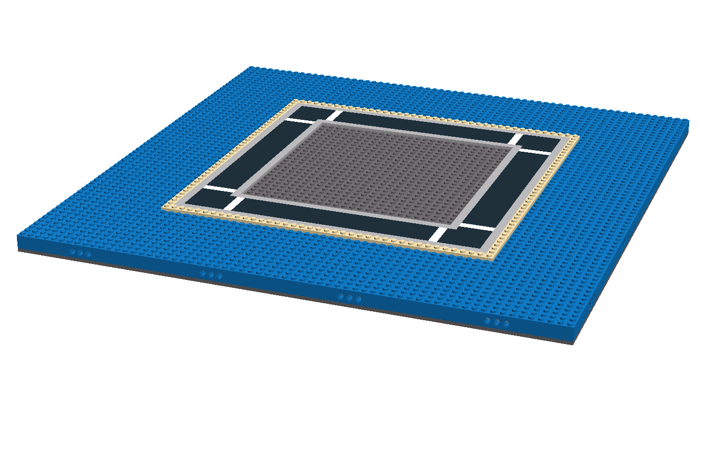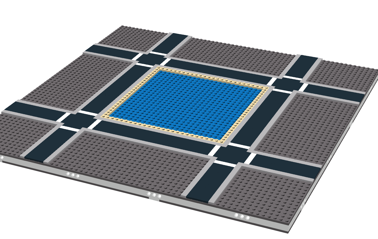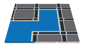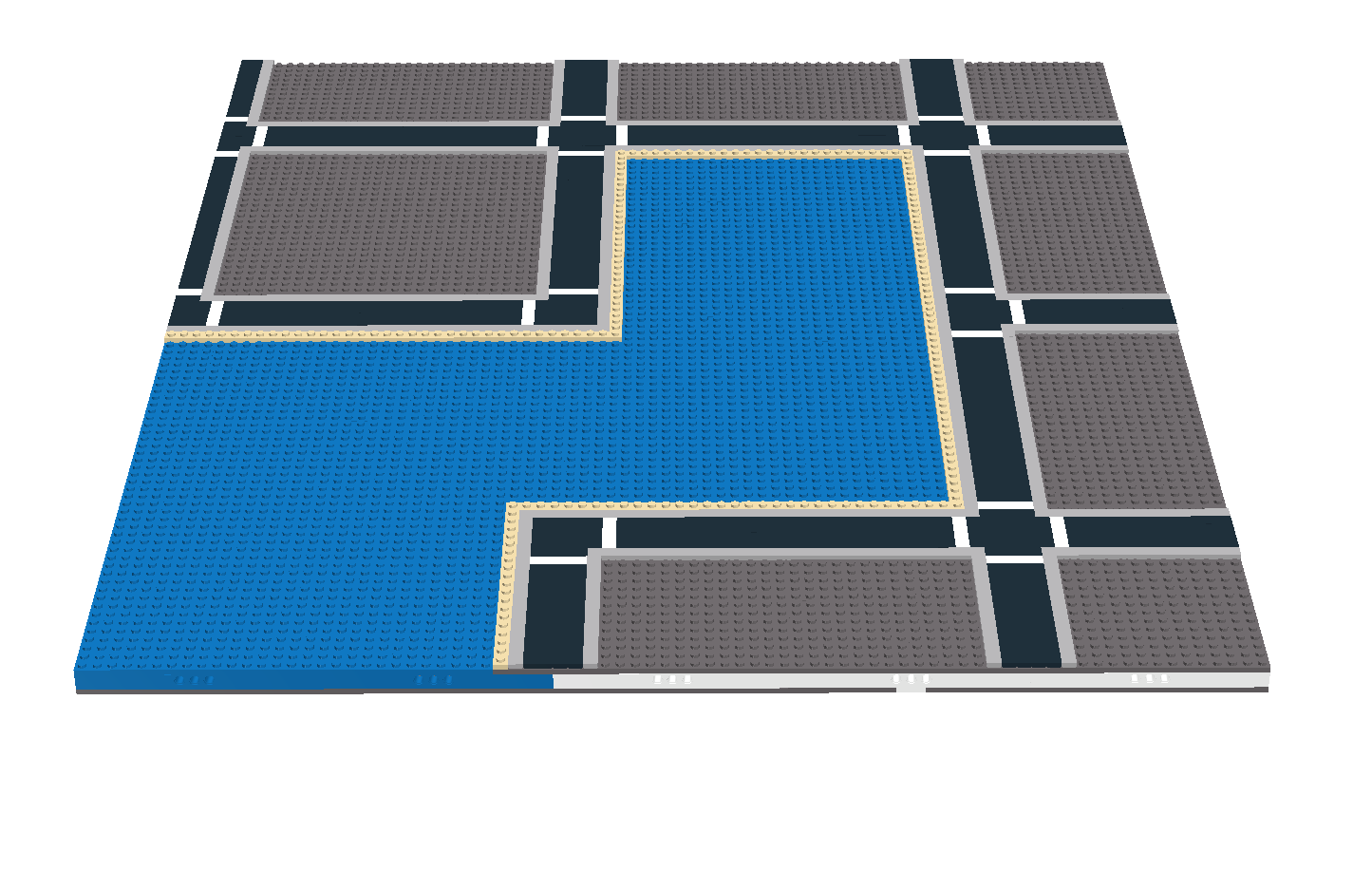 The Open module is the only Waterfront module that borders only other Waterfront modules. Because of this there are none of the usual roads and sidewalks along any sides. Download the Waterfront Open reference module in Lego Digital Designer format.